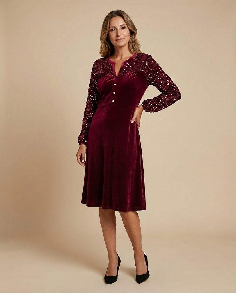 Chiara | Abito Festivo con Velluto Luminoso e Maniche in Paillettes